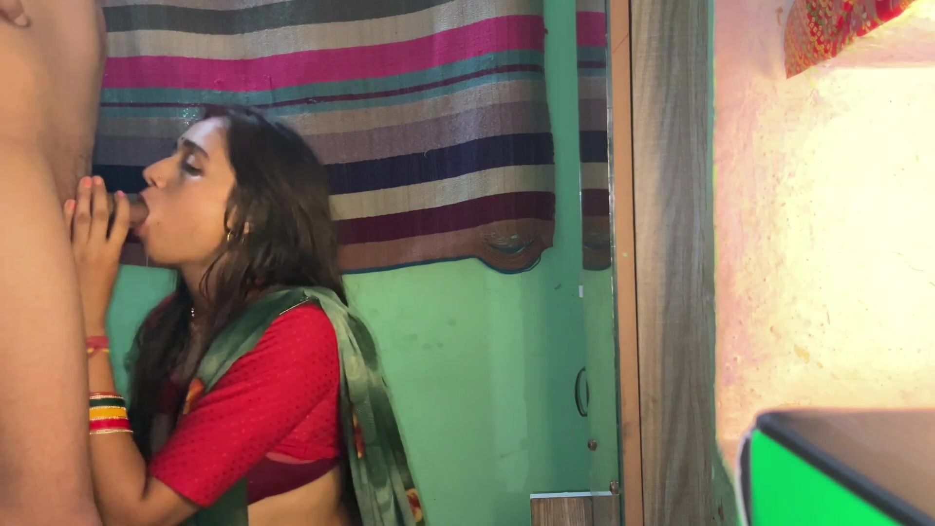 Lal saree mai saji hot bhabhi ko lund chusaake choda