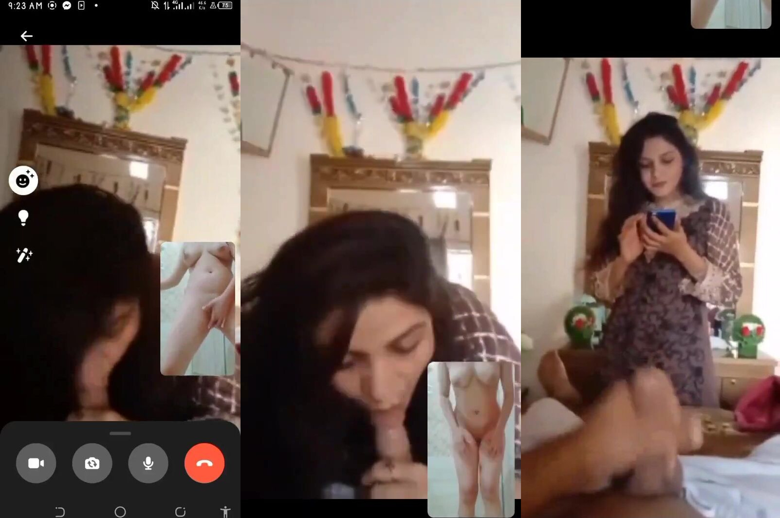 Desi incest sex video mai dekhe jawan sundar ladki apne chachere bhai ka bada lund ko chuske usko blowjob ka maja de rahi hai. Wahi uska cousin bhai lunr chusaane ka maja lete hue apni gf se videocall mai sex chat kar raha hai. Ladki ke ghar pe kisi chij ka function tha or uska chachera bhai bhi waha pe aaya tha. Function khatam hone ke baad sab apne apne ghar pe gaye lekin ladka aaj wahi pe ruka. In do bhai bahan ke bich mai gahari dosti thi to ladka apni cousin ke sath baat karte hue uske room mai hi baitha tha. Dono baat hi kar rahe the ki ladke ke mobile pe uski gf ka videocall aaya or dono sex chat karne lage. Ladki bhi side mai baith dono ka sex chat dekhte hue maje le rahi thi. Ladke ka lund bhi puri trha khada ho chuka tha videocall mai apni gf ke nangi badan ko dekh. Uske gf usko apne bade boobs or apni chut mai ungli karte hue dikha rahi thi to ladke ka lund khada hua to wo apni bahan ke aage hi apna lund nikaal hilaane laga. Apne bhai ka bada lund dekh ladki apne aap ko apne chachere bhai ka lund dekh apne aap ko rok nahi paai or wo uska lund pakad hilaane lagi. Lund ko handjob dete hue ladki nai uske lund ko muh mai leti hai or usko blowjob dene lagti hai. Ladki ko apne cousin ka bada lund itna jyada psand aaya ki wo apna mobile nikaal apne bhai ka lund ka photo kichne lagi maja le aap sab log bhi is desi incest sex