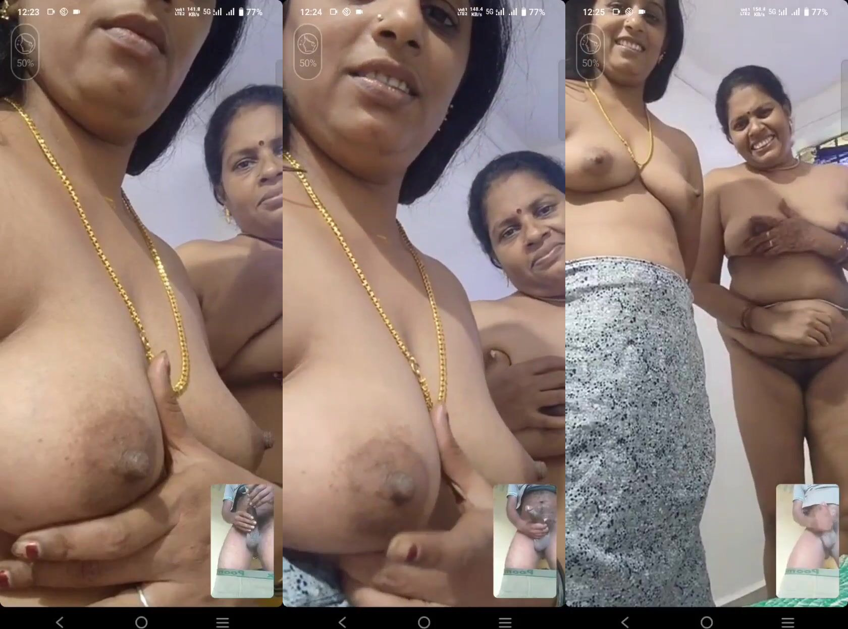 Do desi mature nude auntys ka hot nude videocall. Do randi aunty aaj apne ek coustomer ke sath videocall mai apni apni nangi badan ko dikhaate hue maje kar rahi hai. Udhar dusri taraf ye aadmi bhi apna bada lund ko hilaate hue in do nangi auntys ko dikhaate hue muth maar raha hai. Haste hue ye do randi auntys ek dusre ke bade boobs ko dabaati hai or ek dusre ki chikni chut mai ungli karte hue is aadmi ko dikha rahi hai. Ye jo aadmi abhi in randi auntys ke sath videocall mai mastrubation karte hue maje le raha hai wo aksar in do auntys ko ek sath chodke threesome sex ka maja bhi liya karta hai. Lekin indino apne kaam mai kuch jyada hi busy hai isliye wo in randi auntys ko chodne nahi aa saka. Isliye ye do mature nude auntys is aadmi ke tharak ko videocall mai hi shant karne mai lagi padi hai. Maja le in do randi auntys ke bade boobs moti chikni gaand or chikni chut ka.